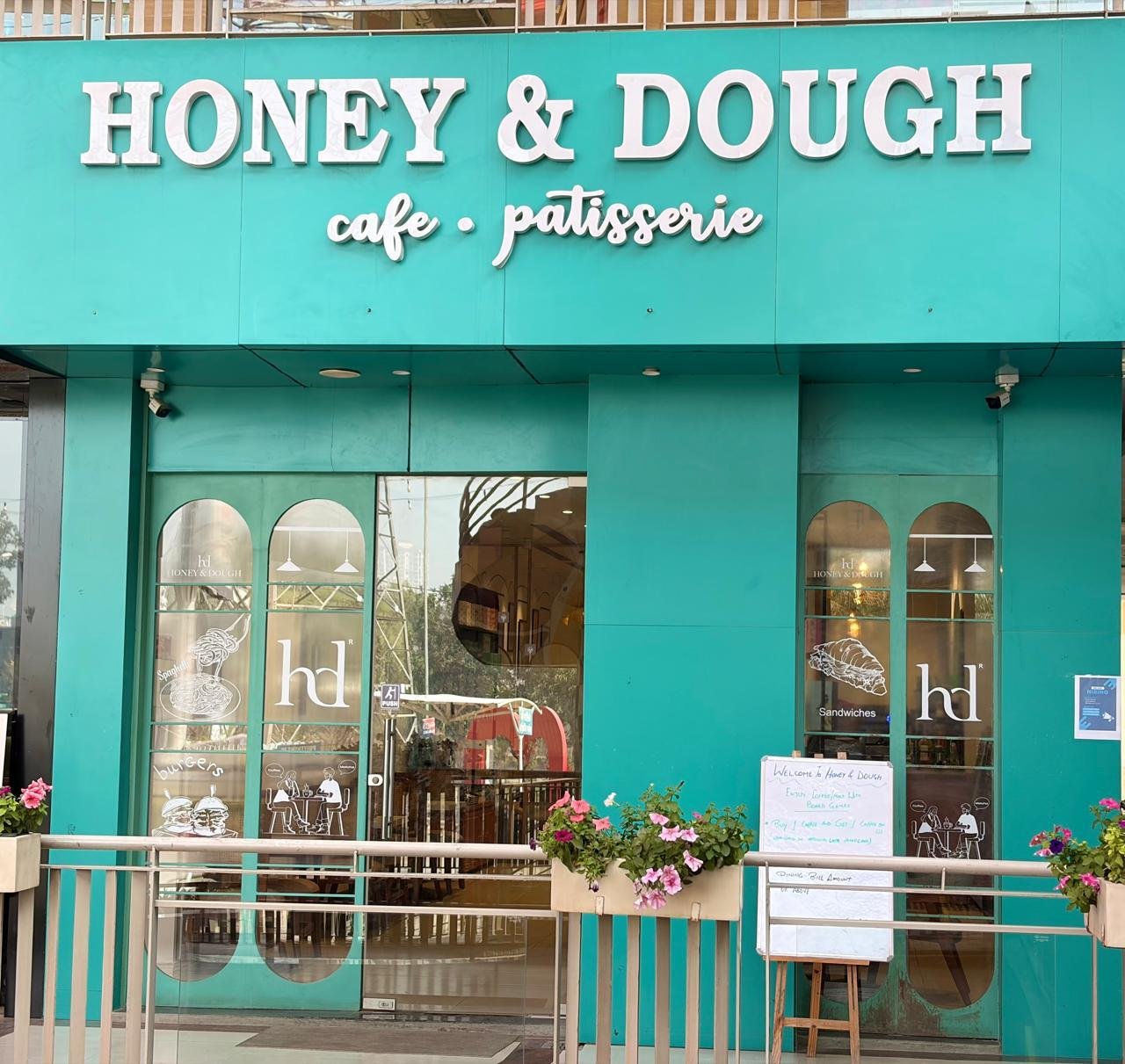 Honey & Dough Cafe & Bakery at IRIS Broadway, Sector 85, Gurugram is a modern neighbourhood café known for great food, specialty coffee, and a relaxed vibe perfect whether you want to work or just chill. The menu features freshly baked breads, gourmet sandwiches, pizzas, pasta, salads, bowls, desserts, and handcrafted beverages. Known for its flavourful, freshly made pizzas and indulgent bakery treats, it’s ideal for coffee breaks, brunch, casual meetings, and everyday dining. We also offer beautifully curated gift hampers and catering through Caterus for all kinds of events.