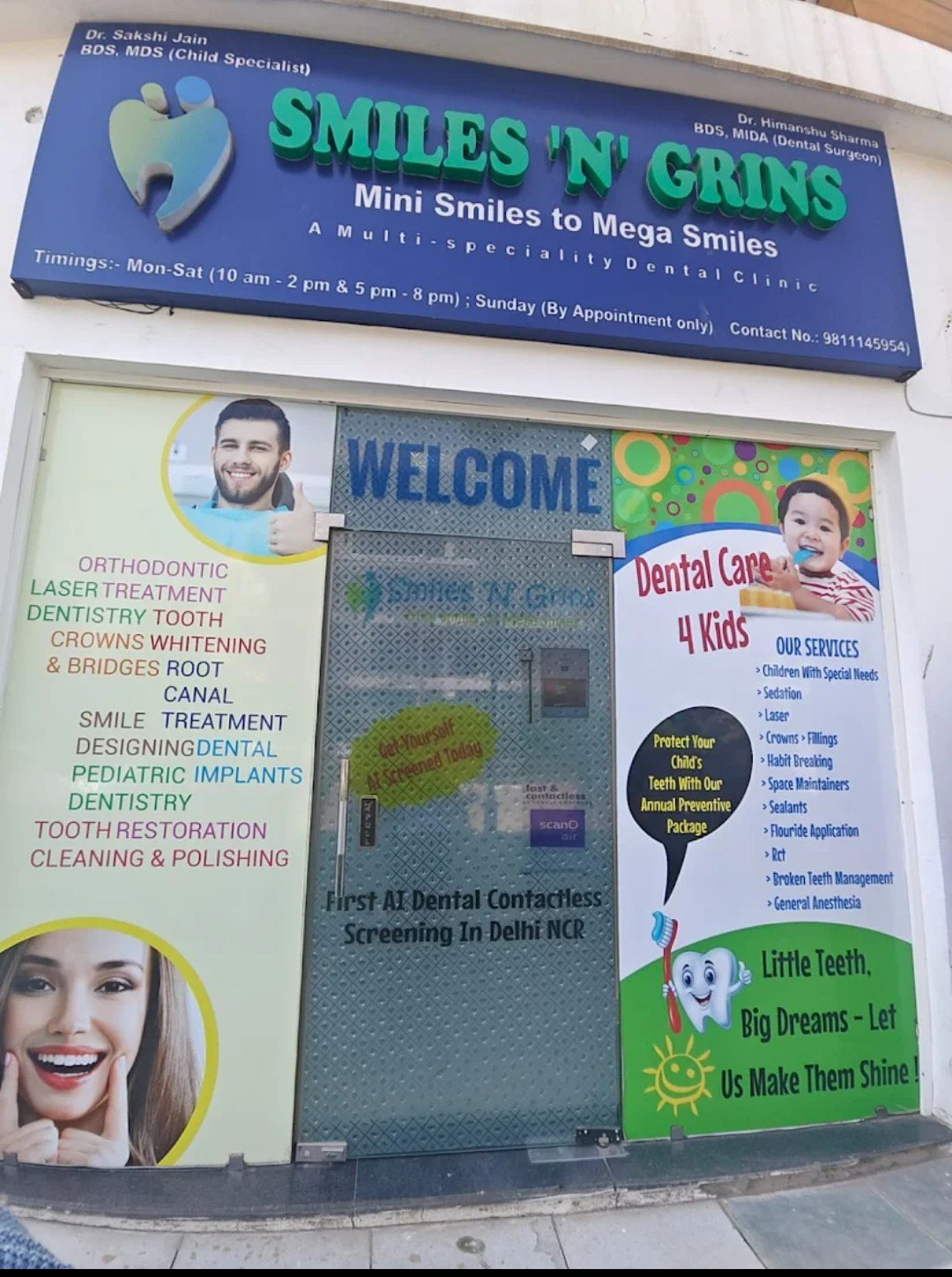 Smiles N Grins is a multi-speciality dental clinic which specializes in kids and family dental practice. It is occupied with all the latest technologies like laughing gas, needleless injections, lasers. Patient satisfaction and comfortable treatment is their primary aim.